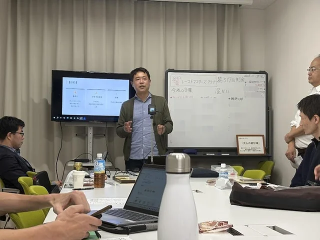 会員が「企画したい例会」をプレゼンし、実際に例会で実現するという新しい取り組みの提案。マンネリ化を防ぎ、クラブをさらに活性化する教育担当らしいアイディアで、響TMCへの深い愛情が伝わるスピーチでした。